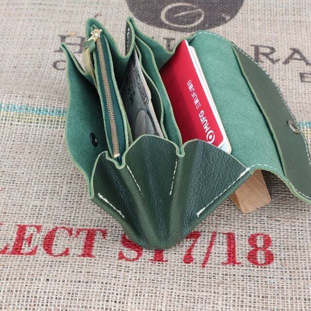 ジャバラの長財布/ファスナーコイン入れ/大きな財布/ハンドメイド財布/かわいい長財布/jaba-green